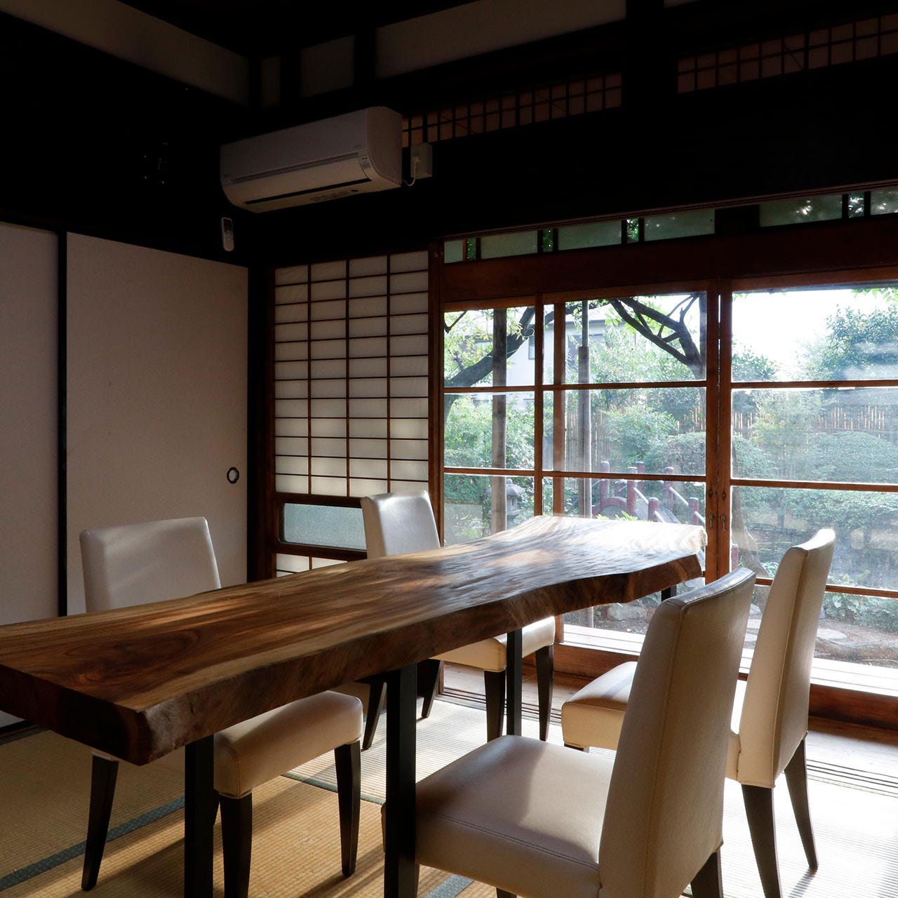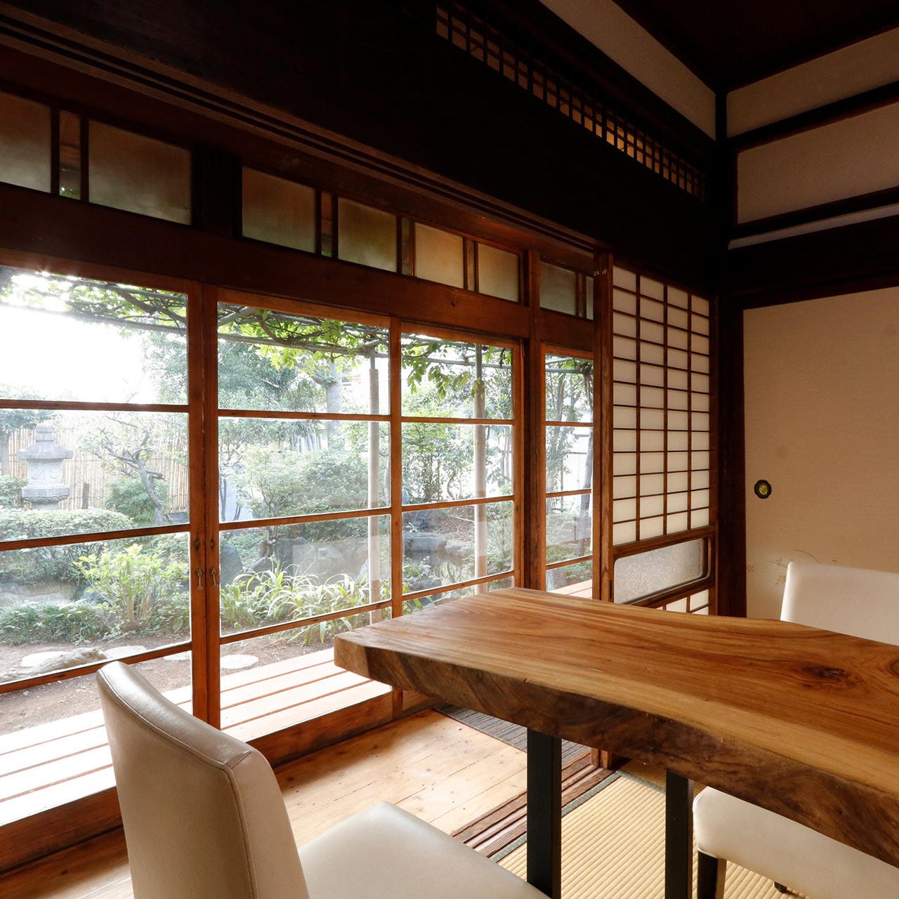 そんなお庭を眺めながら食事ができる店内も
