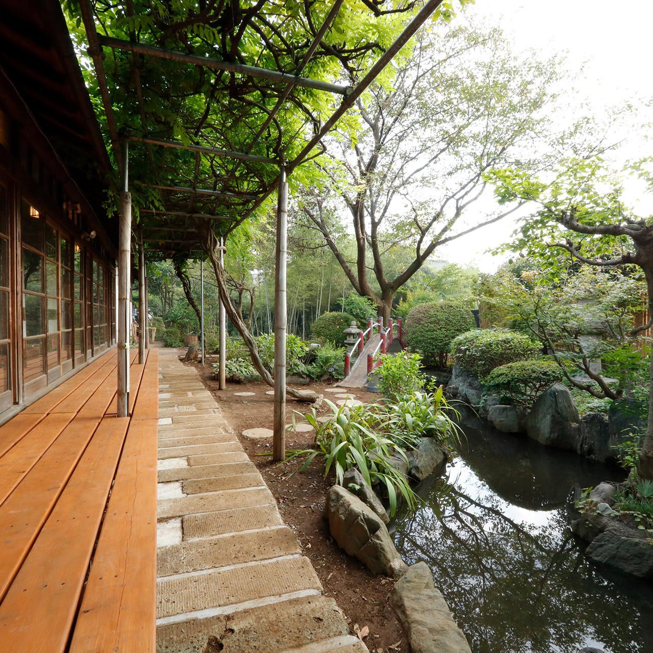 お庭には池があって
