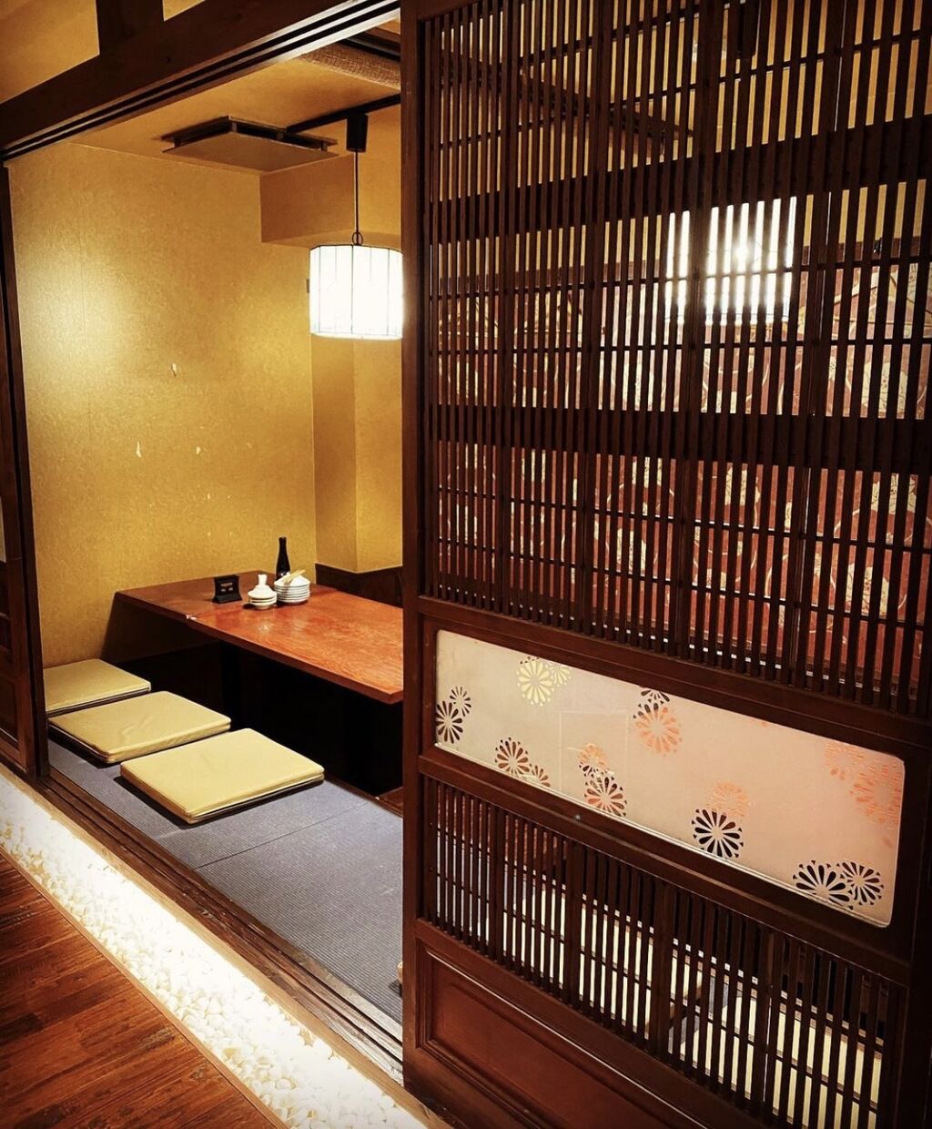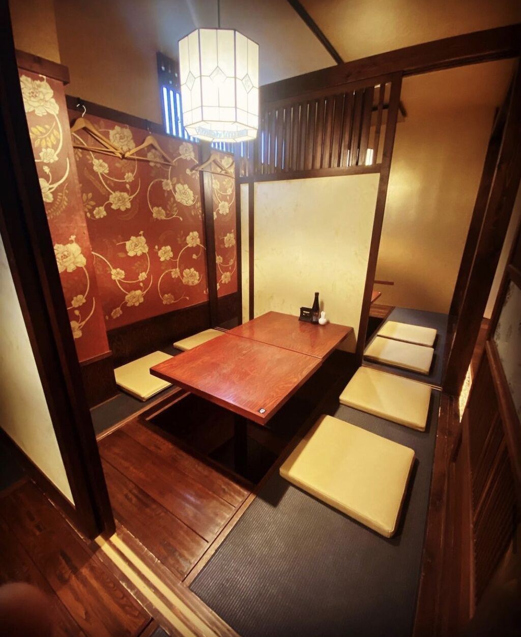 ②2名から最大22名まで対応可能な掘り炬燵半個室でのご宴会やカジュアル接待