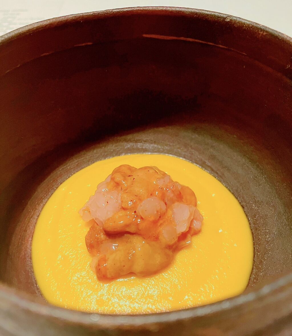 スタートは秩父長瀞の水を使った出汁にかんきつの香りを加えた「初めの一皿」。そして、埼玉の食材をふんだんに使った「3種の埼玉の小鉢」。