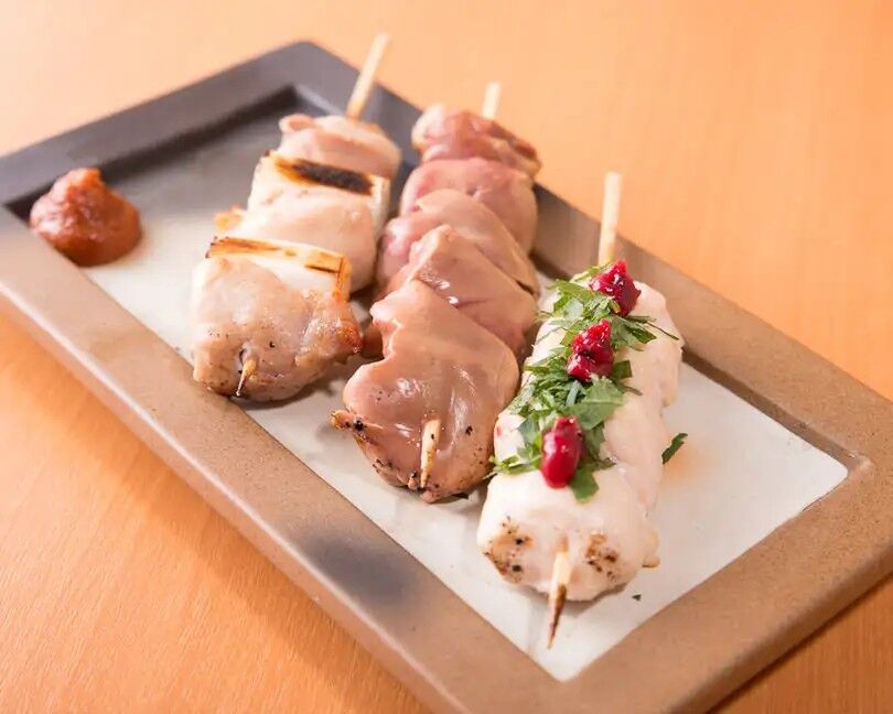 ① 100羽に一羽しか取れないといわれる鳥のフォアグラと呼ばれる白レバー串